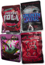 Sweets: Gummy Bears, Death Star, Watermelon, Mario, Gummy Worms, Cherry Kola, Kandy, Rebecca Rabbits Rainbow Belts, Boom Up Strawberry Mojito, Boom Up Pina Colada, Mummy’s Melons, Pedro Pony’s Pineapples, Candy Cats Cola Bottles, Stoner Patch Pineapple, Stoner Sweets UK Pick n Mix 350mg